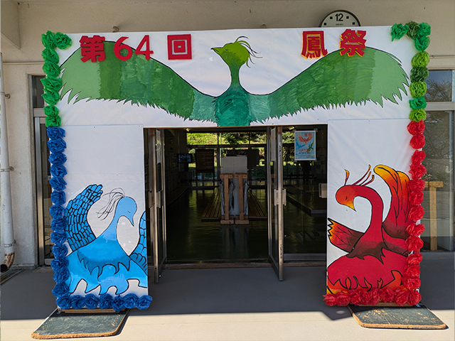ステージ発表の行われる体育館への入口も飾り付けられていました。