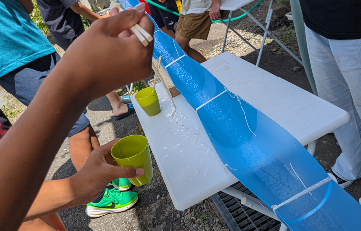そんなわけで、数年前から同時開催で「流し素麺大会」を行っています。
