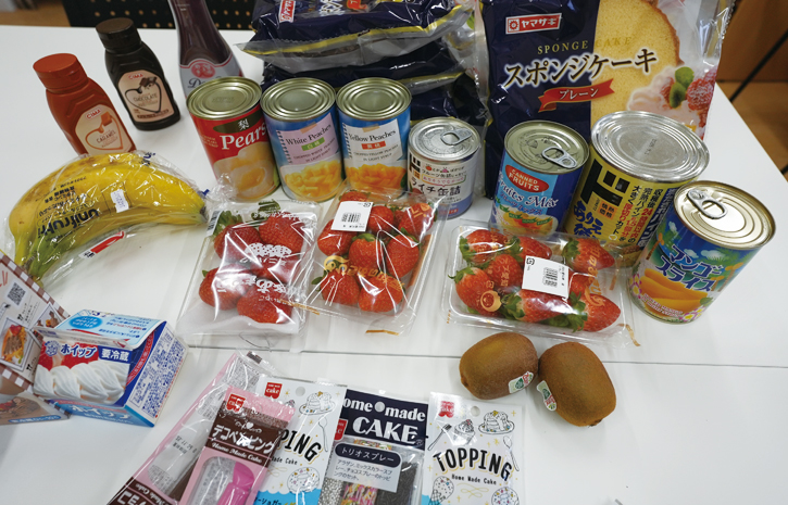食材はイチゴなどの青果のほか、缶詰のフルーツやトッピング用のチョコレートなど様々準備しました。これら食材から獲得できたものを使ってチームごとにケーキを作っていくわけです。