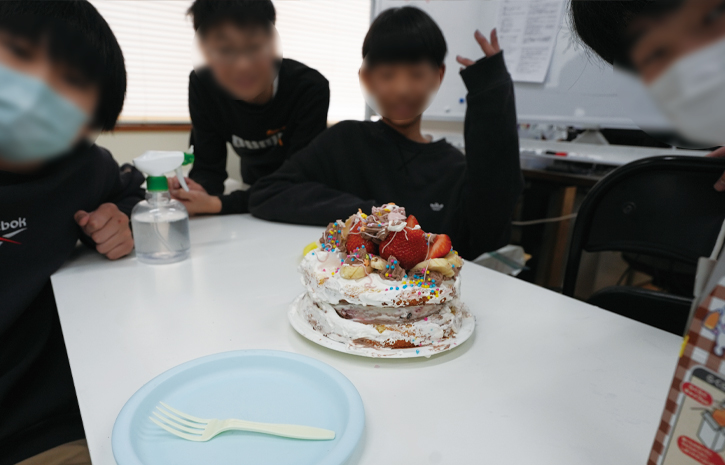 今年も冬休みの宿題を終わらせようぜDAYと同時開催で恒例の「遅れてきたクリスマス会」を開催、お昼に勉強の息抜きも兼ねてみんなでケーキ作りをしました。