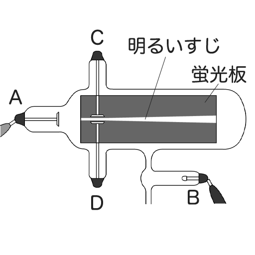 図のように、放電管のAB間に電流を流したところ、明るい筋が蛍光板上に現れた。この明るい筋のことを何というか。